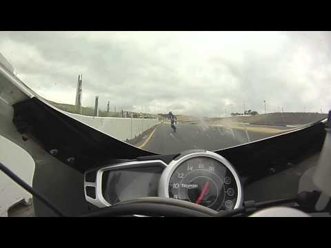 In the novice 750 production I started in 3rd position,I got a pretty good start but not as good as the other three riders #822 Yovany Alvarez,#744 Manual Hernandez and #999 David La Bree that was now in front of me putting me in 4th going into turn 2.The first lap I spent chasing rider #999 David La Bree. Lap 2 two by turn 7 I was able to gain ground back that La Bree inched out in lap 1 but was unable to get close and make a pass.The end of the 2nd lap is where I ran into Problem #2 "False Neutral from 2nd gear to 3rd"I quickly put my hand in the air to symbolize to racers behind me #986 Lorenzo Rios and #923 Jahan Raissi that were now passing me that I have a problem. I tried to get my bike to shift into 3rd gear but it would not go. After about 4 kicks I finally got it to go into gear and continue my race. I was able to make a pass a few turns later on Jahan and was quickly gaining ground on Lorenzo. The beginning of lap 4 I was able to pull right behind Lorenzo,I would follow him for a few corners to see where I could pass him safely and I noticed that I could break a little deeper than he does.Going into turn 6 "the carousel" I was right on the rear wheel of Lorenzo setting up my drive into turn 7. we were side by side as we came out the bottom of the carousel,I was just able to get on the gas a little sooner enabling me to claim a position going into turn 7 but thats where problem #3 begins "Tank Slapper" as we came out turn 6 heading towards turn 7 full throttle,in split second I was in a tank slapper.The first thought in my head was do not touch the front break.... give it gas and straighten it out,before that was able to happen the handle bars started whipping back and forth faster and more violent until it threw me off of the bike.I did a few bounces and slid a good few feet and was able to run of track escaping with a little bit of bruising.This would be the end of my weekend.